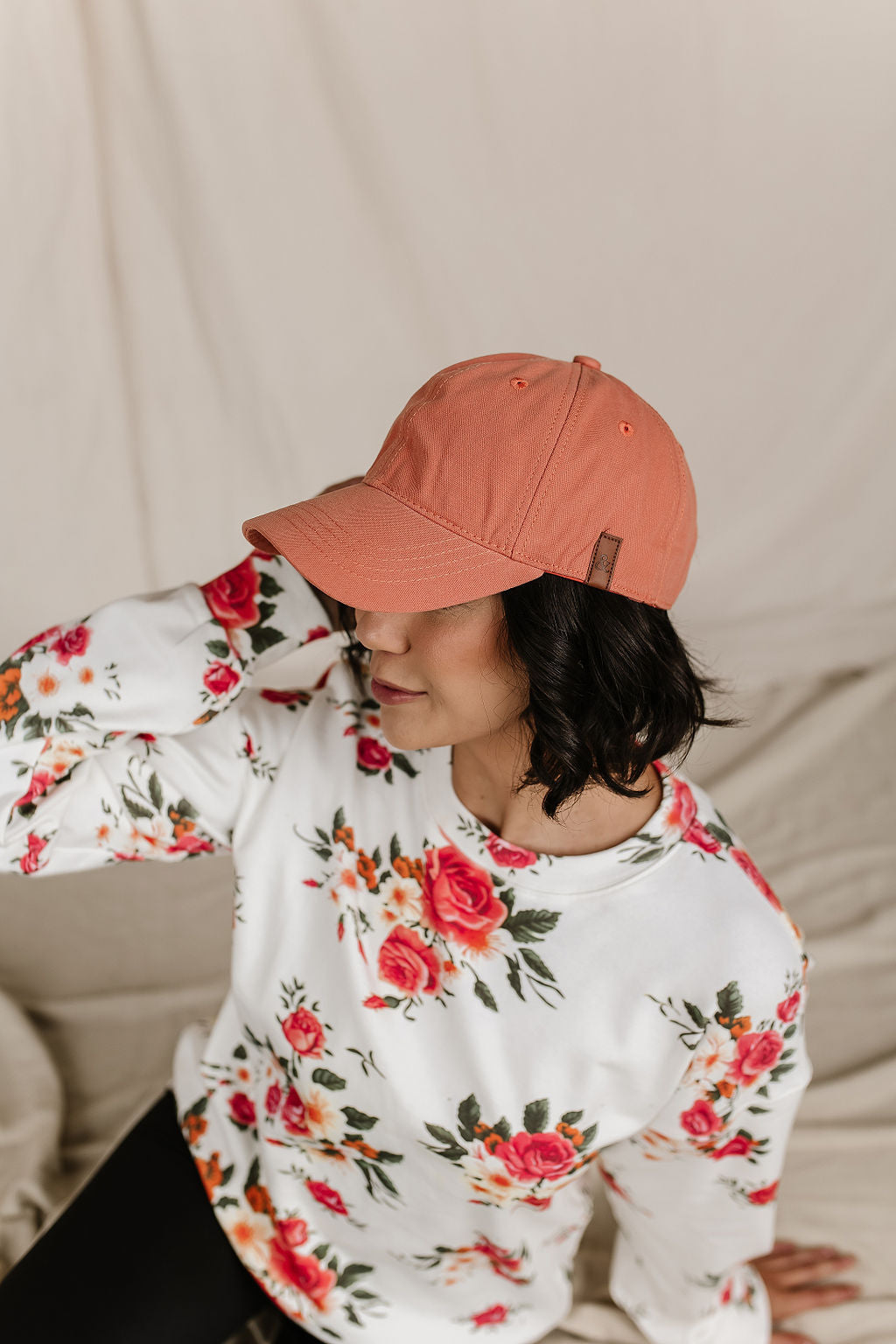 This low profile baseball hat will be your new staple accessory. A branded vegan leather "&" patch and an embroidered "Ampersand" on the velcro closure keep your look clean and sophisticated while giving you full adjustability. Color- Clay