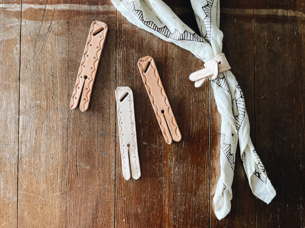 The Bandana Slide is a hand tooled, adjustable slide crafted from minimal and durable vegetable-tanned leather, providing a secure and stylish accessory for any outfit. Its adjustable width ensures a great fit for all bandanas, creating a timeless look.