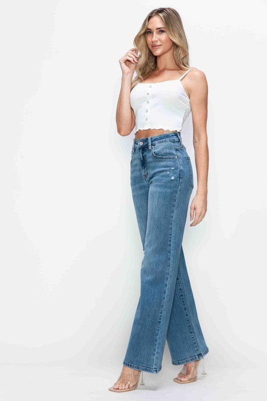bytos Full Size High Rise Wide Leg Jeans with Pockets