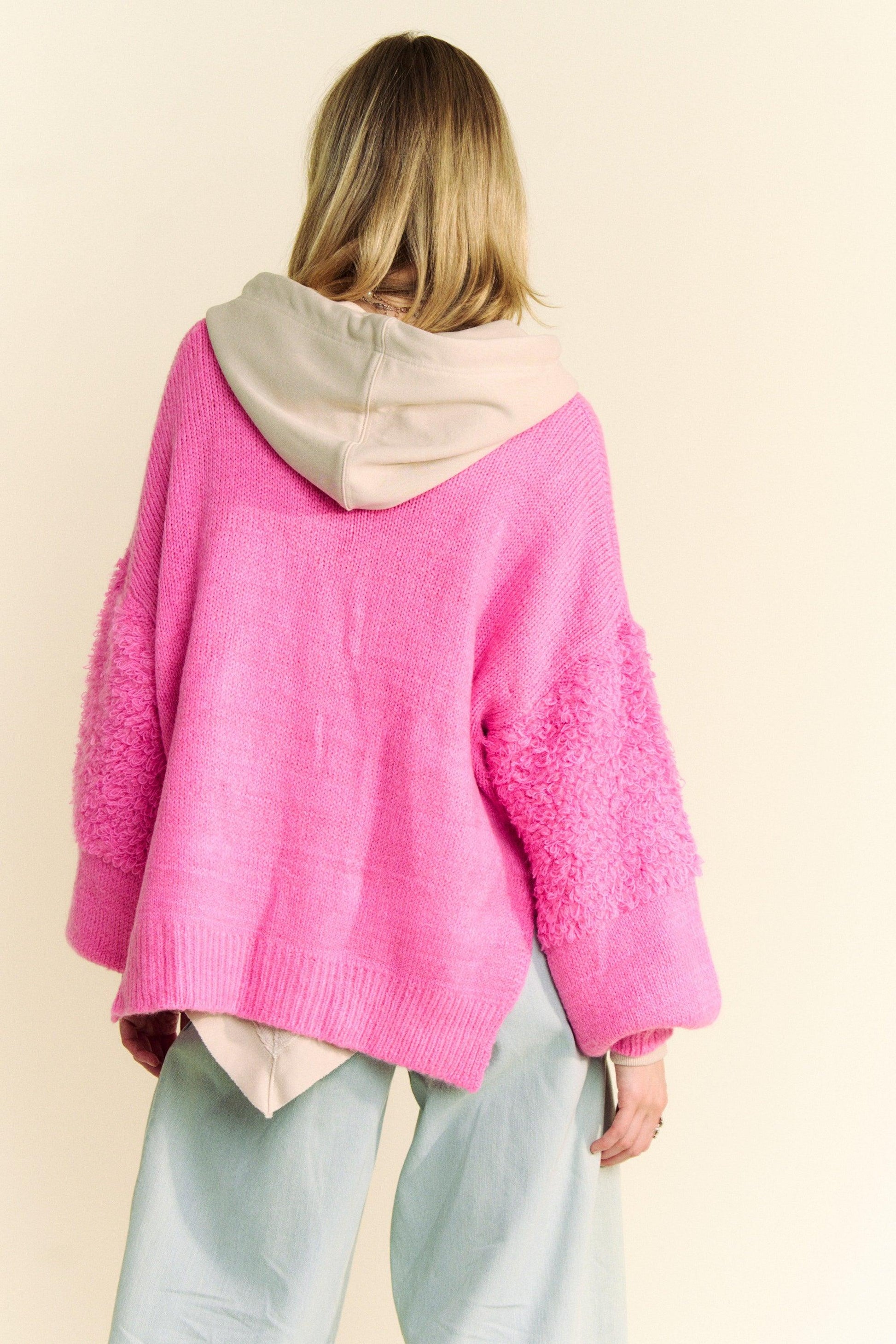 Davi & Dani Side Slit Open Front Long Sleeve Cardigan