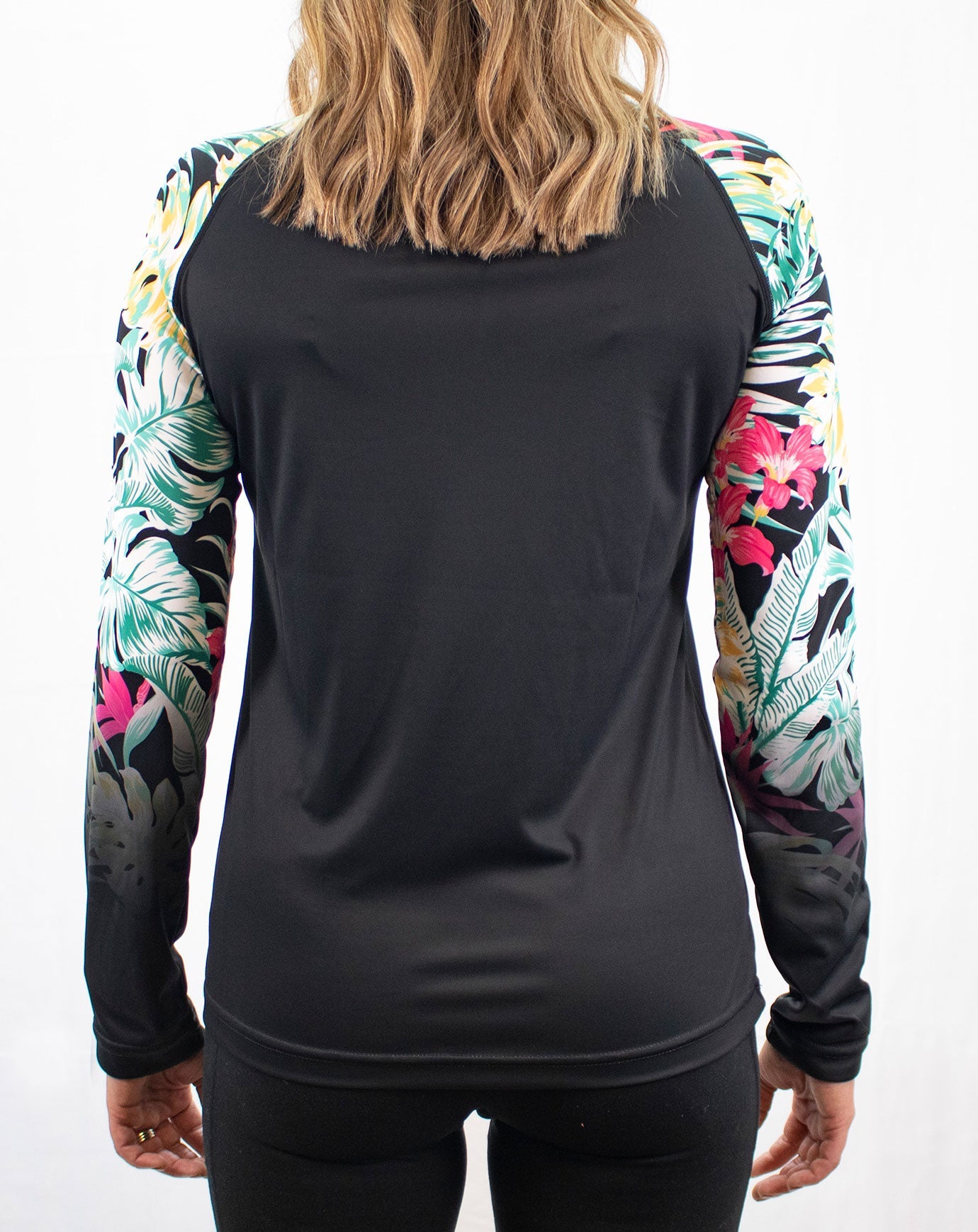 Suit up for life in the tropics with beautiful florals and sun-protective UPF 50+ fabric. Fully suited for sunny days, the Erin Long Sleeve fishing shirt features floral print sleeves and a performance fit.The model is 5'8" tall and wears a size M in the photo.