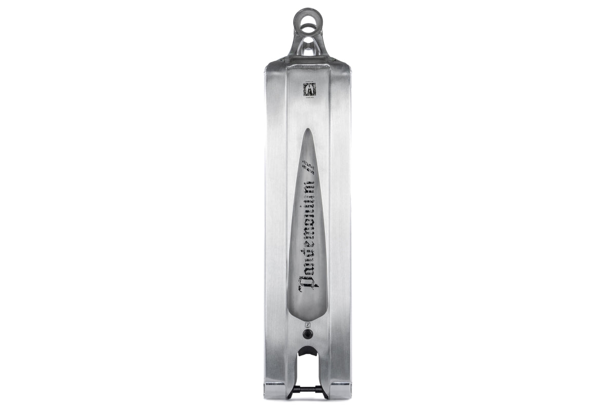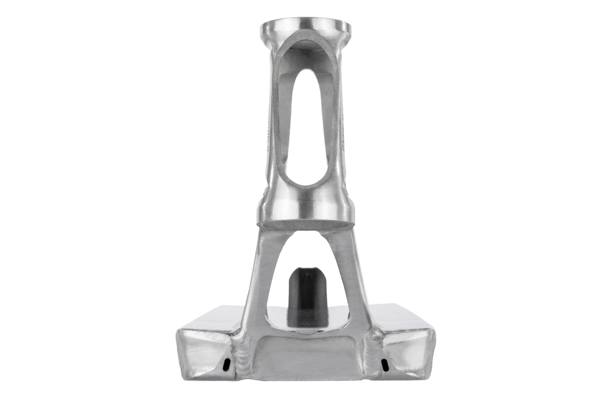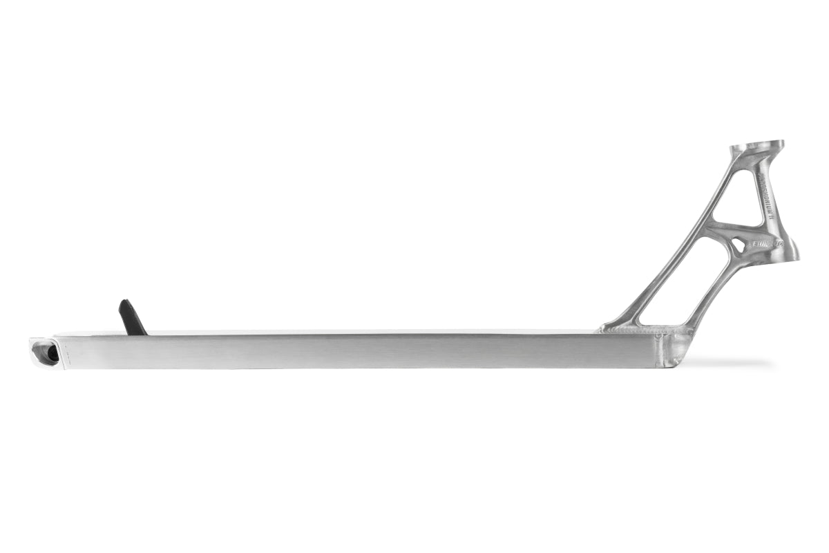 Hundreds of hours of simulations were carried out to obtain the most effective geometry possible, giving it 33% more resistance to the banana effect, as well as 40% more resistance on the neck. Now made from 6082 aluminium (slightly stronger than the usual 6061). Now compatible with 120mm diameter wheels, it comes with a brand new fender for added lightness.