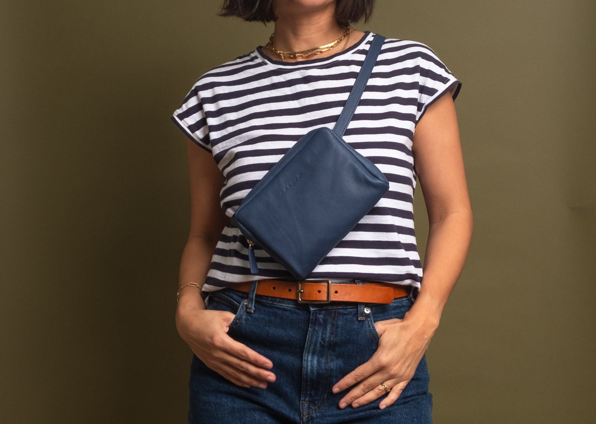 The hip bag that will change the way to live life is here. This is you new best friend for a more empowered and hand-free lifestyle. This is the perfect size for your phone, wallet, sunglasses and all those other essential items you want to have with you at all times. You can wear it around your waist, as a high cross body bag, over your shoulder or even as a cute clutch without the strap.