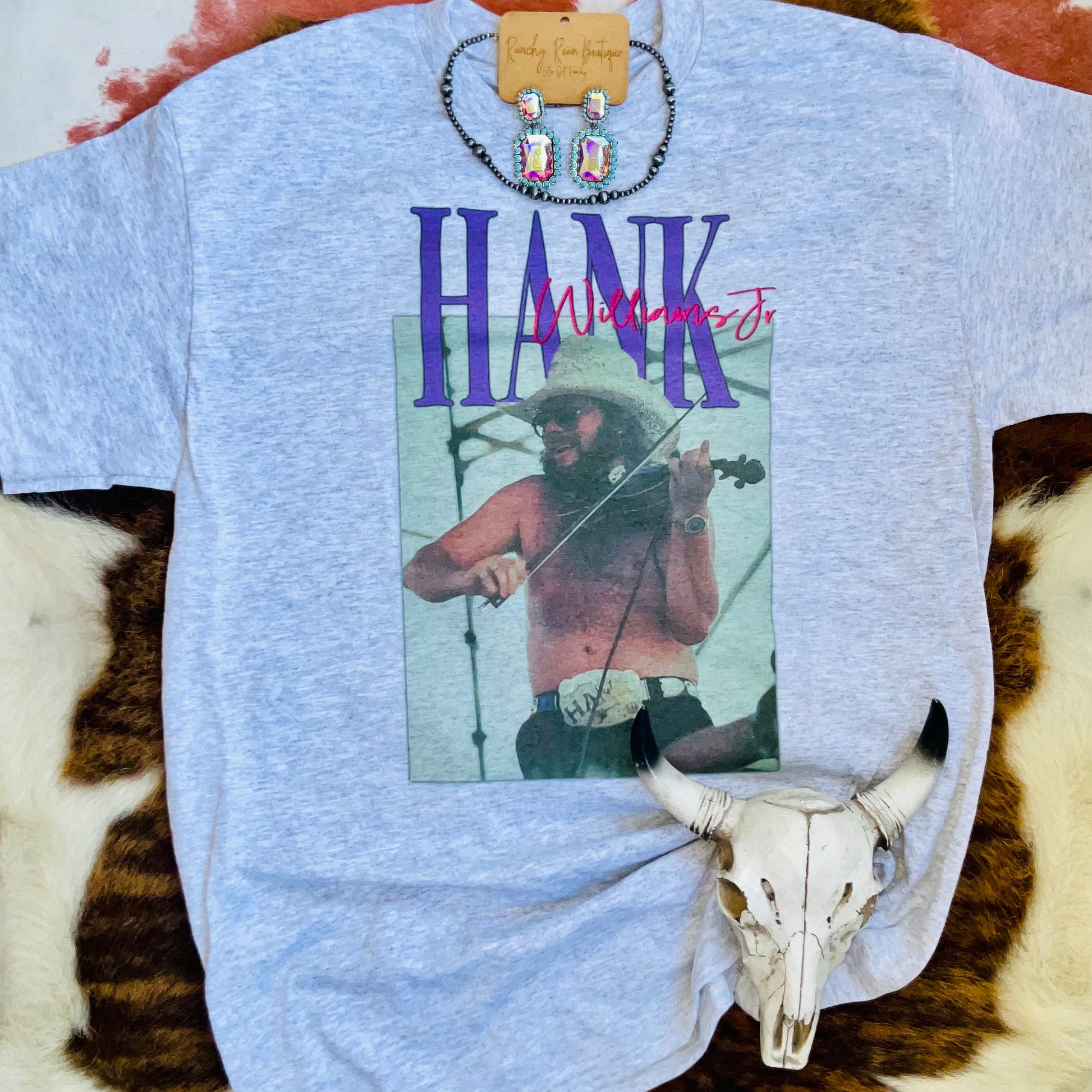 For the true country music lovers, the Hank Williams Jr. Vintage Graphic Tee is a must-have. Featuring an iconic image of Hank Jr. playing the fiddle, this tee captures the outlaw country spirit in a bold, retro design. The classic Western-style typography in purple and red adds a vintage concert vibe, making it perfect for any Hank Jr. fan.