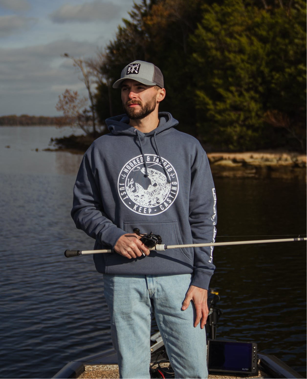If you target muskies on a regular basis you may be "wrong" in the head but we are perfectly okay with that, so are we. We appreciate the hunt, the what ifs and the almosts! 10,000 casts can be literal or it can be metaphorical. The grind is real but the reward is addicting so here's a hoodie to show off that obsession!