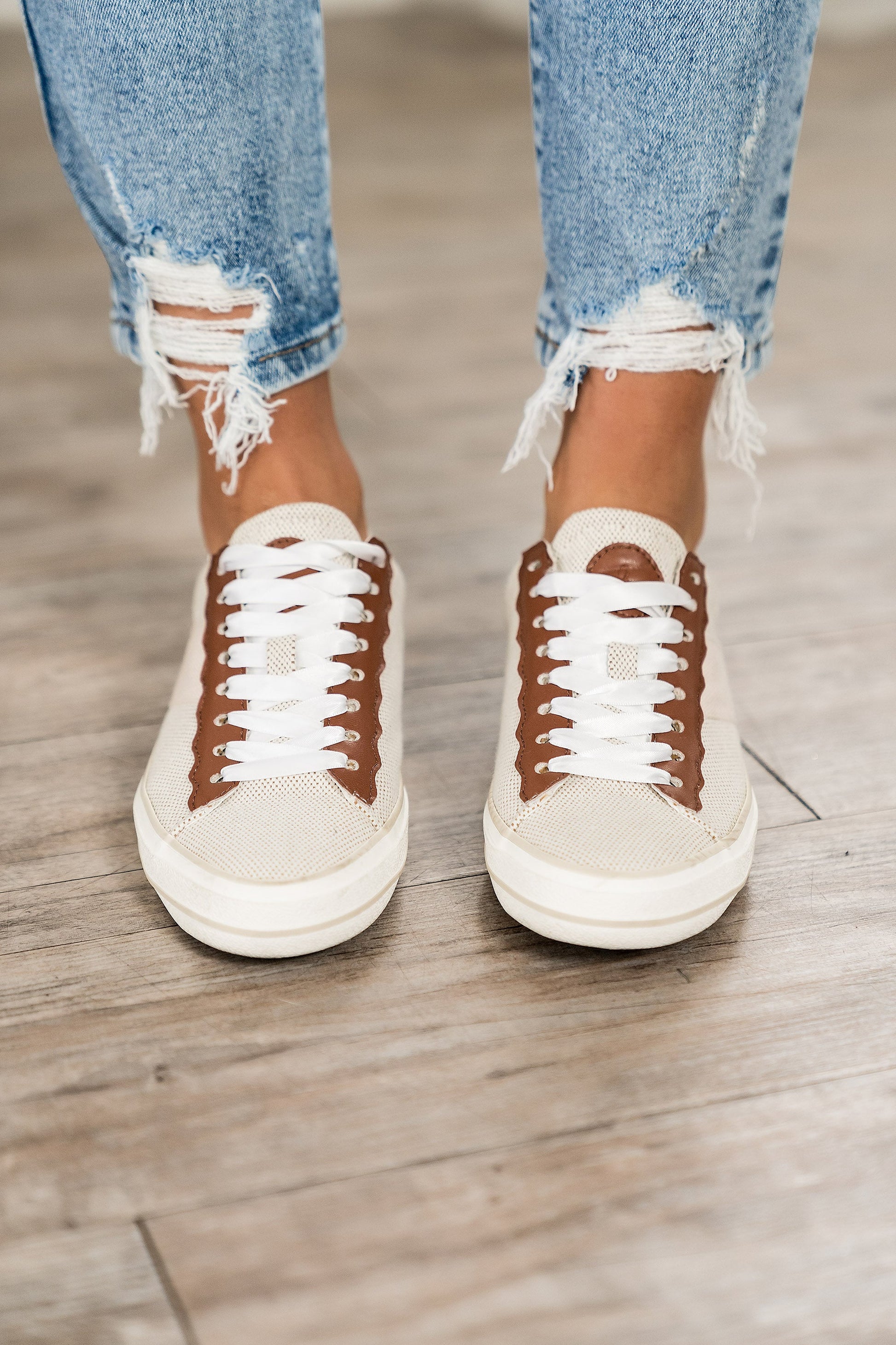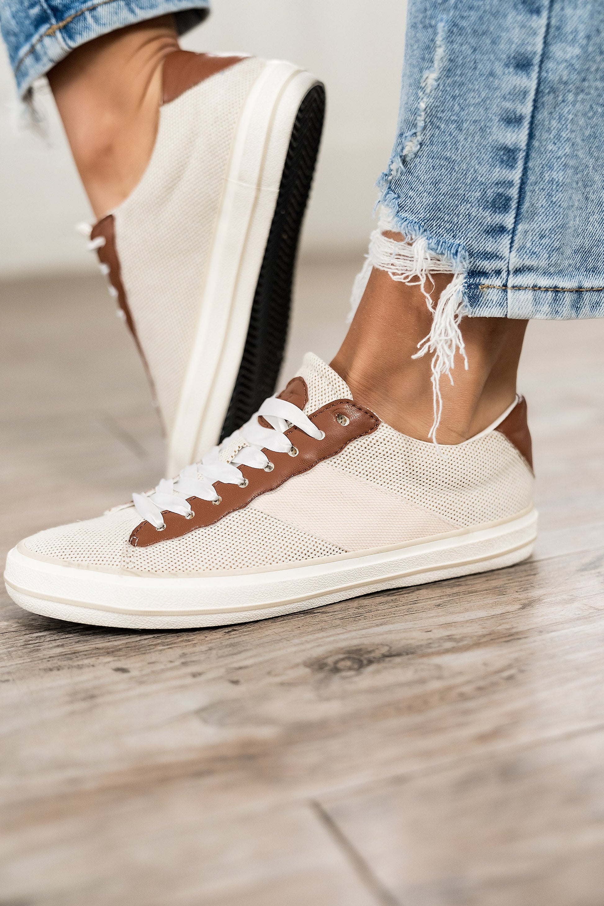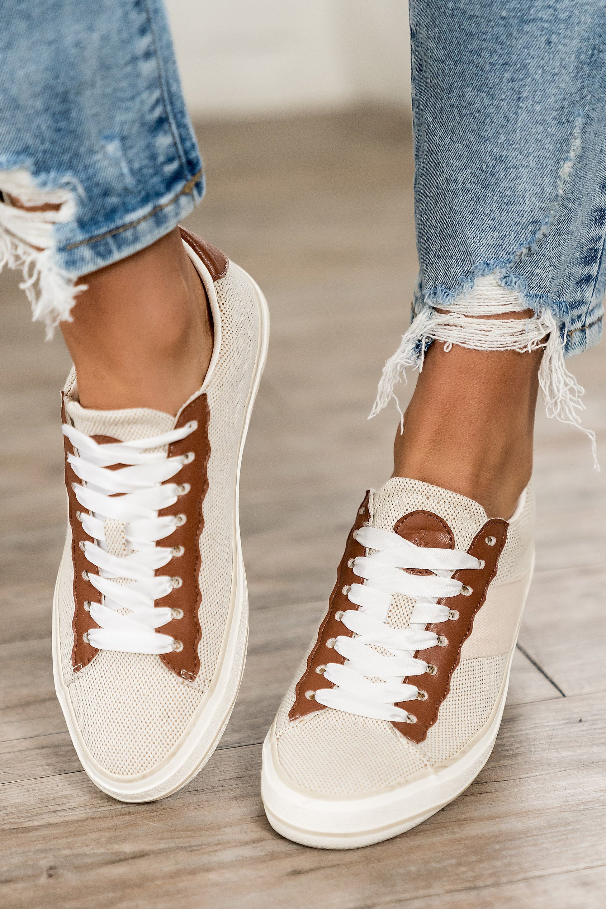 Introducing Main Street Sneakers by Ampersand Avenue! These classic style sneakers feature a tweed upper with cognac faux leather accents, offering a timeless yet trendy look. Designed with comfort in mind, they come with a padded insole and are true to size. The white bottom beautifully contrasts with the tan body and cognac brown accents, making them a versatile addition to any wardrobe.