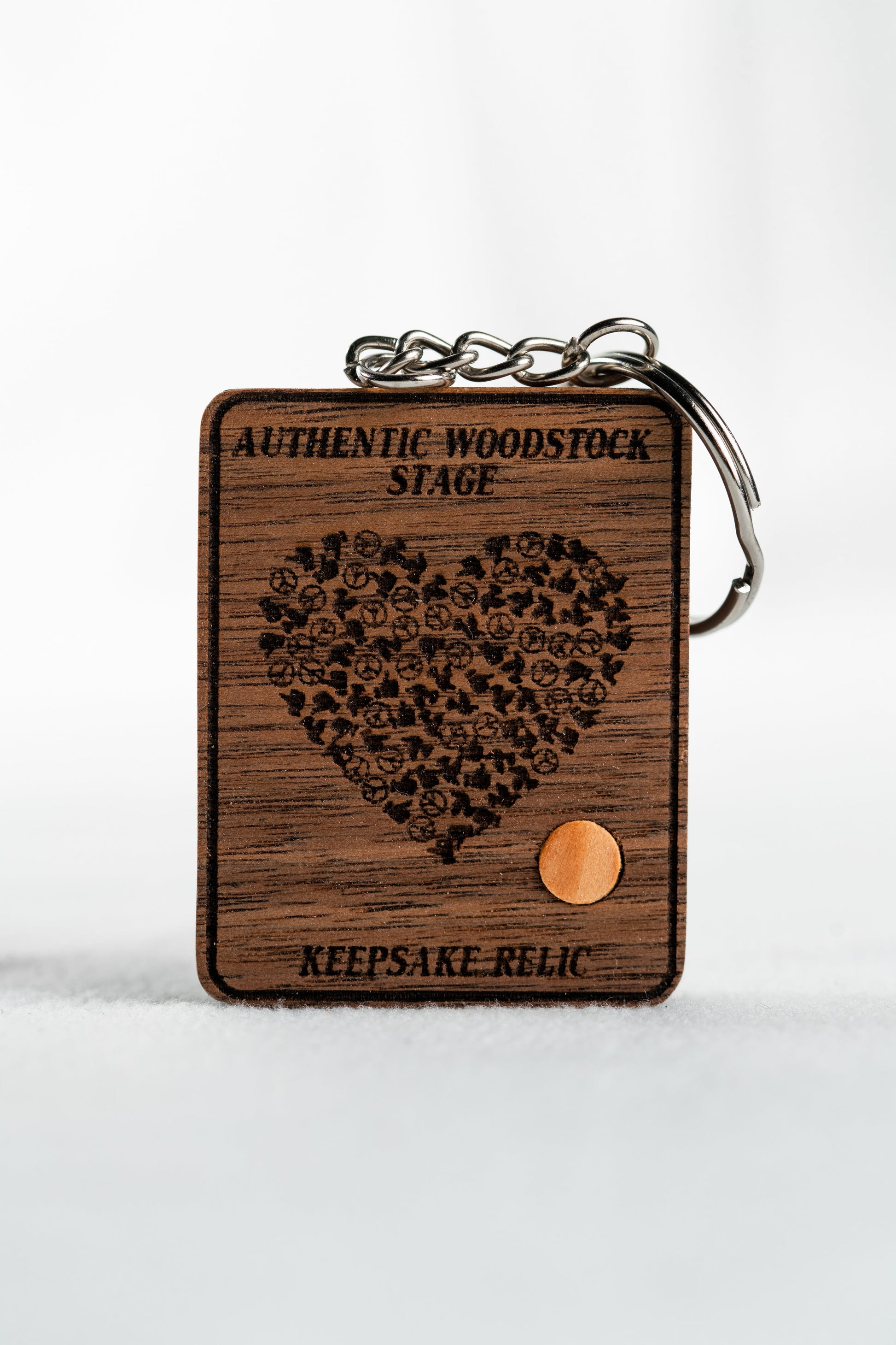 Add a little Peace, Love, & Stage to your keys with our NEW collection of Peace of Stage Key Chains, which inlays an authenticated piece of the 1969 Woodstock stage along with the laser engraving of your choice.