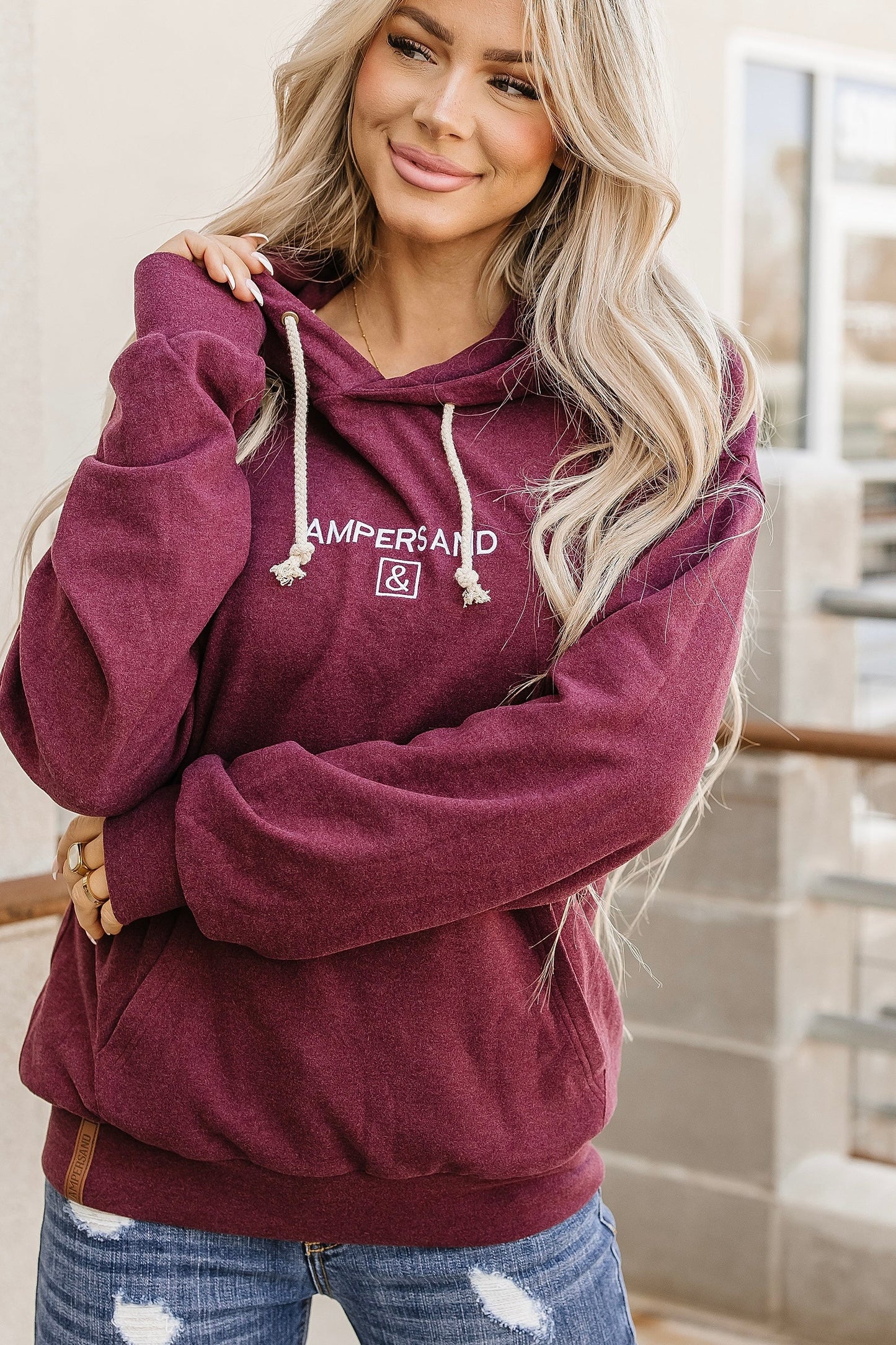 Introducing the Ampersand Avenue Performance Fleece University Hoodie in Wine, a stunning addition to our Boss Babe Collection! This hoodie features a rich allover wine color adorned with elegant white embroidery, exuding sophistication and style.