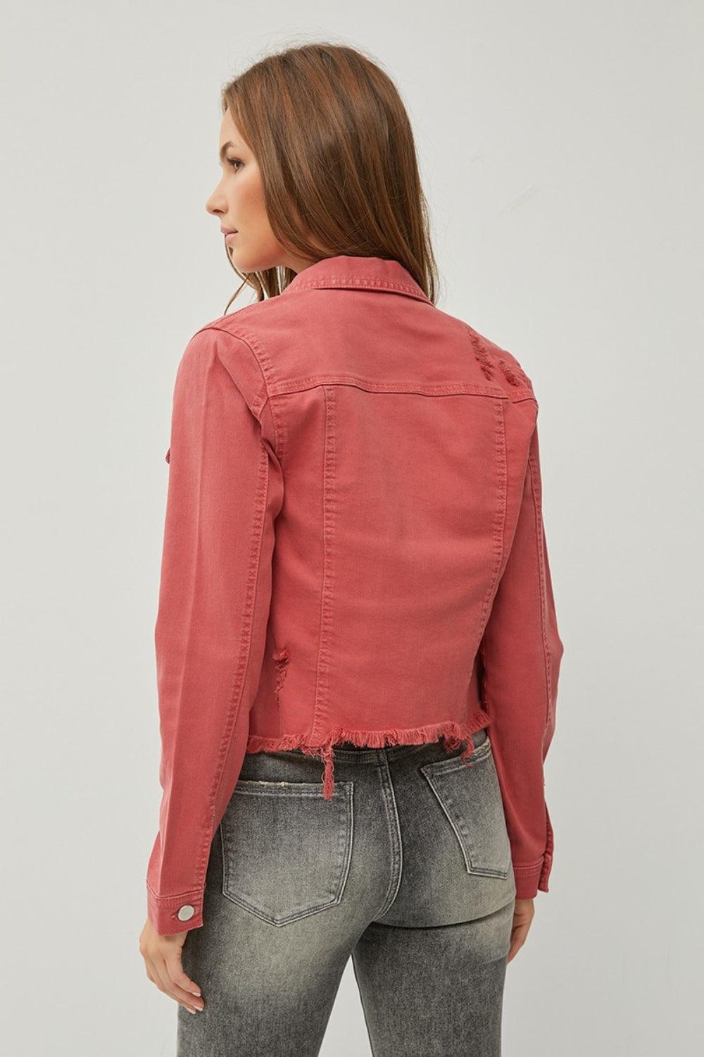 RISEN Full Size Raw Hem Button Up Cropped Denim Jacket Plus Size