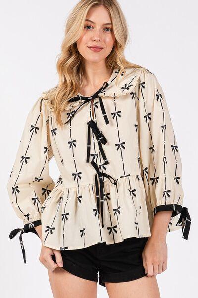 SAGE + FIG Bow Print Tie Front Babydoll Blouse