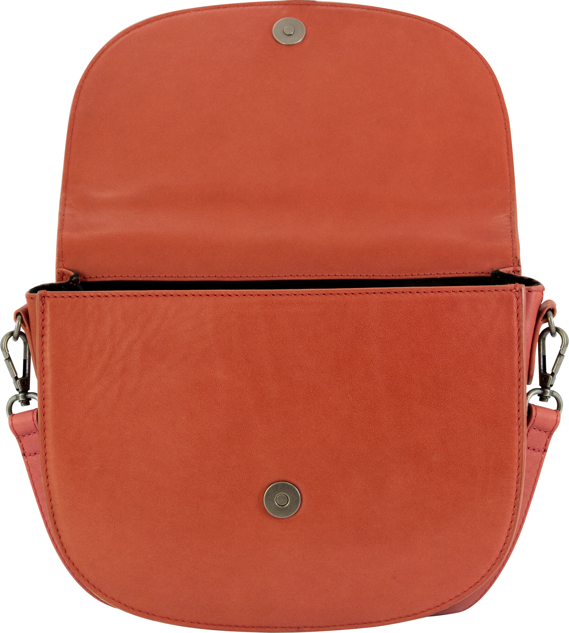 Sophia, from our new Maia VT Leather Series, is a saddle bag adjustable crossbody with an accordion design. It features a half flap front with hidden magnetic snap closure. The structured main compartment is spacious with a deep, open pocket on one side.