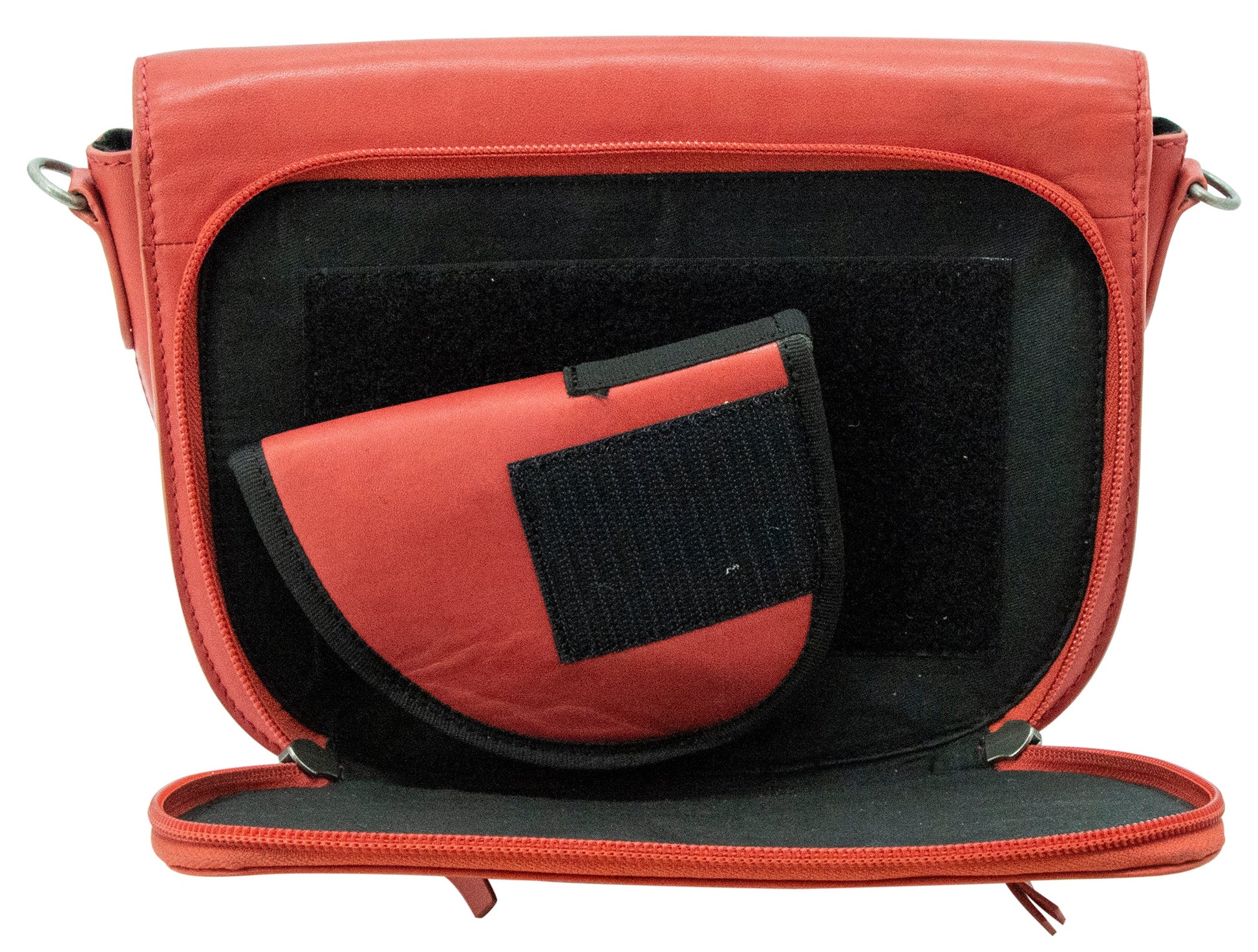 Sophia has a rear, individual CCW pocket with full 270*, two-way zipper access. The CCW compartment is padded, with velcro lining on one side, and comes equipped with a matching holster with velcro on either side to allow you to personalize the placement within the pocket for maximum comfort and confidence while carrying.