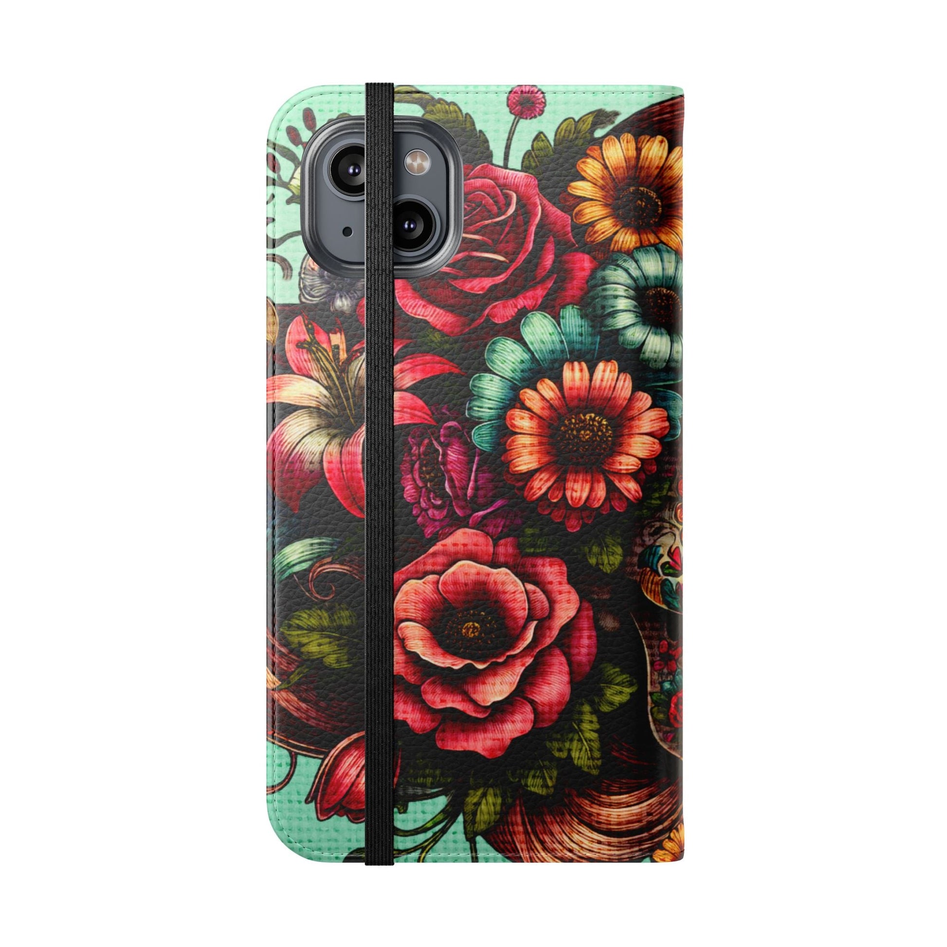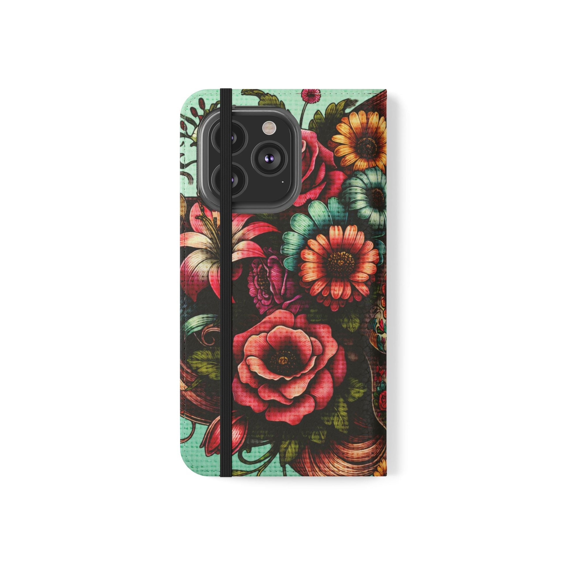 This Flip Wallet Phone Case fuses bold style with smart functionality, making it a must-have for the fearless trendsetter. Featuring vivid, detailed floral sugar skull artwork, it injects a daring edge into your everyday gear. Beyond eye-catching looks, it shields your phone and offers handy slots for cards and cash—perfect for those who live life in the fast lane. Whether you're hitting the city streets, jet-setting, or owning the night, this case keeps you ready and stylish. An unforgettable gift for Christmas, birthdays, graduations, or any moment worth celebrating.