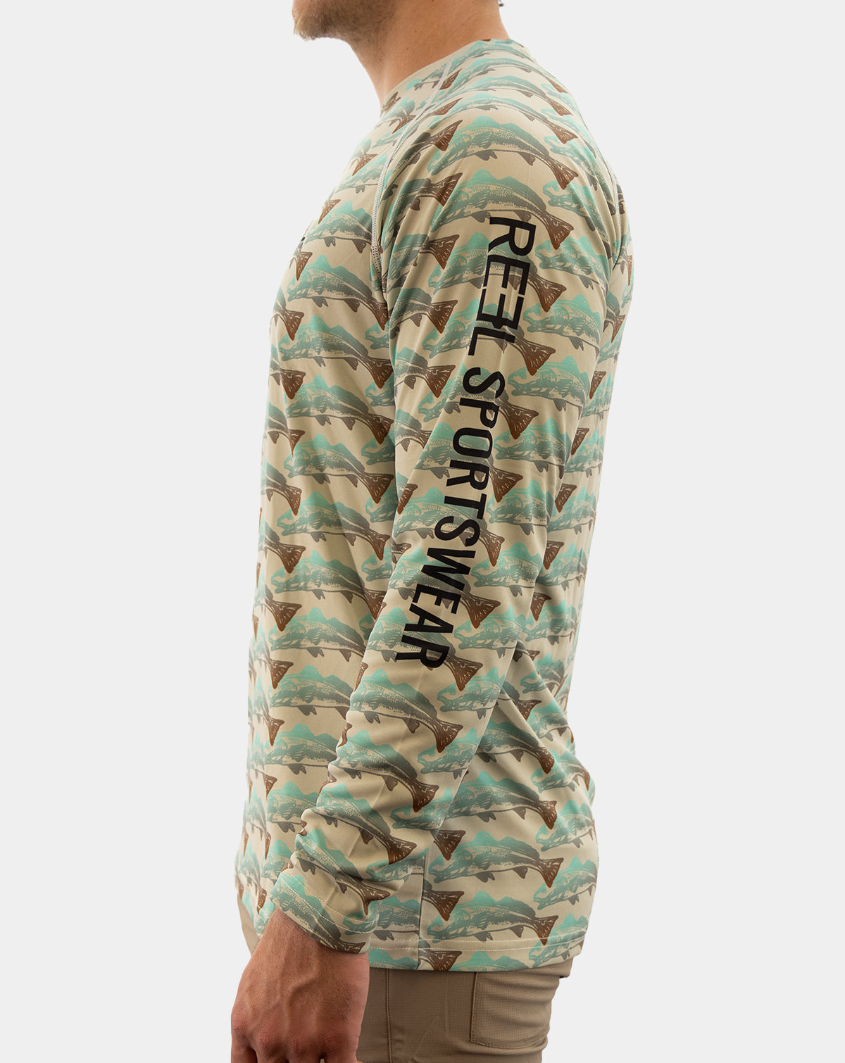 Introducing the Tailer Park Long Sleeve Performance Shirt – a seamless blend of functionality and striking aesthetics for the passionate angler. Crafted with our high-quality Core™ fabric, the Tailer Park shirt elevates your fishing experience with its unique design, featuring a vibrant array of redfish. Offering UPF 50+ sun protection and superior quick-drying technology, this shirt ensures you stay comfortable and protected throughout your fishing adventures. Its lightweight construction and distinctive redfish design make the Tailer Park Long Sleeve not just a piece of clothing, but a statement of style and passion for the sport. Perfect for those who refuse to compromise on performance or appearance, the Tailer Park Long Sleeve Performance Shirt is your next essential gear for unforgettable days on the water.