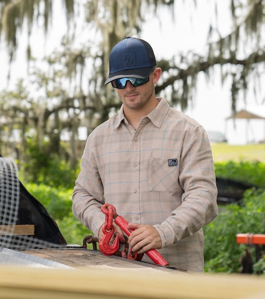 Top off your protective outdoor wardrobe with the classic Men’s Trucker Hat featuring the iconic “Three Fins” logo. As with all Fintech headwear, this brimmed cap is made with performance materials to keep you cool and comfortable. Features include breathable mesh side and back panels.