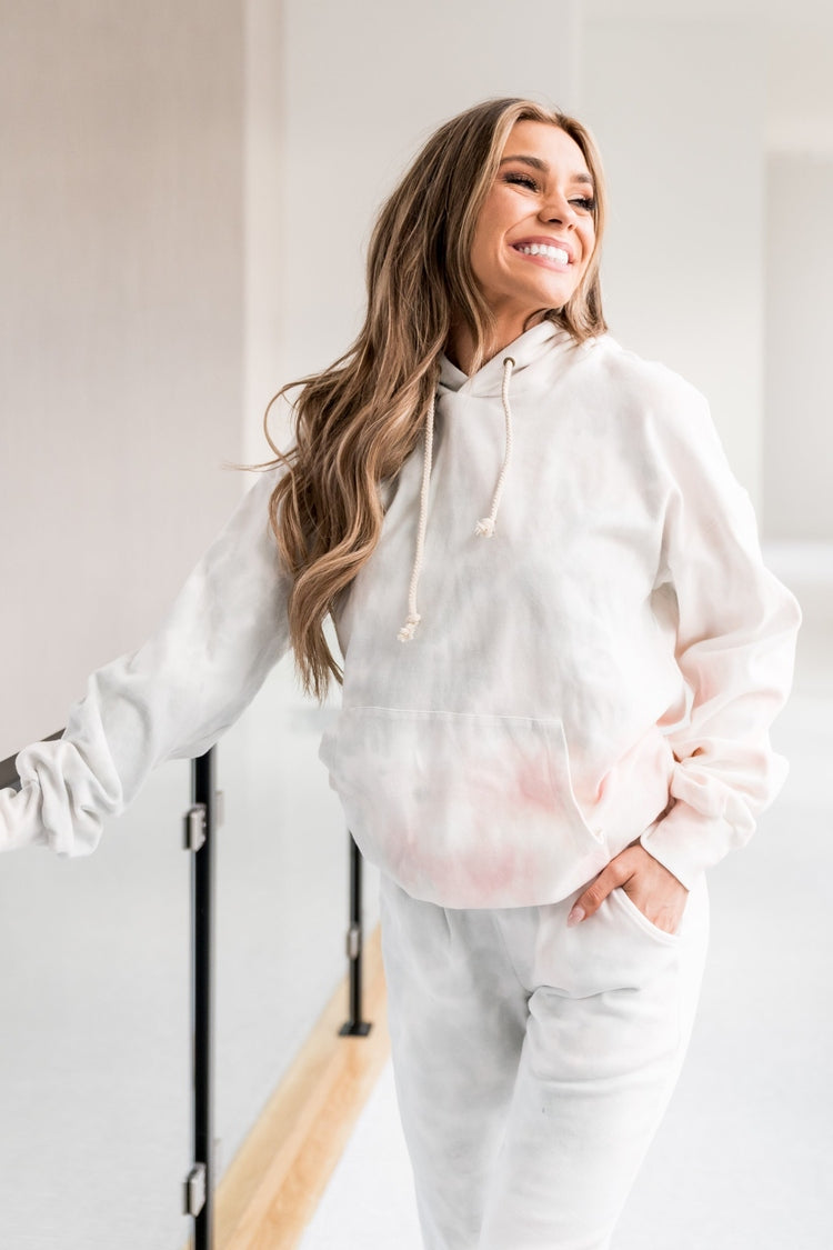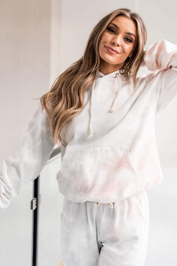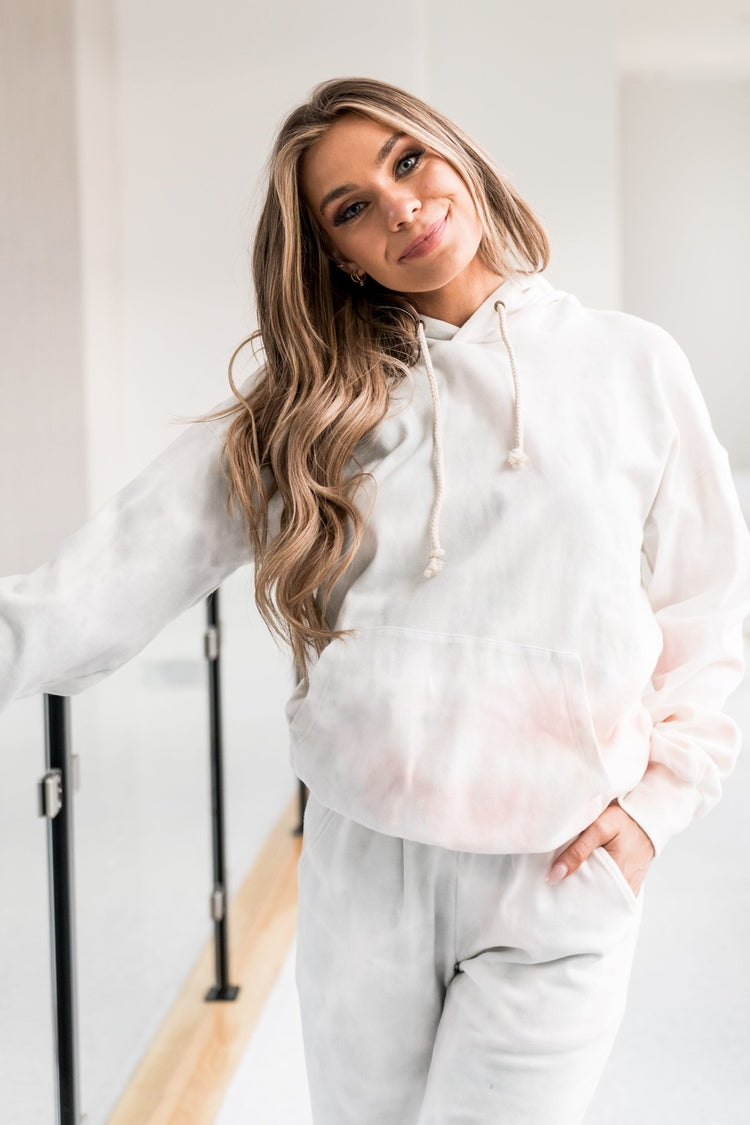 Introducing the Ampersand Avenue Above The Clouds University Hoodie from the Above the Clouds Mix & Match collection! This stylish hoodie boasts the same captivating pink and grey/blue tie-dye design, perfect for adding a touch of flair to your wardrobe.