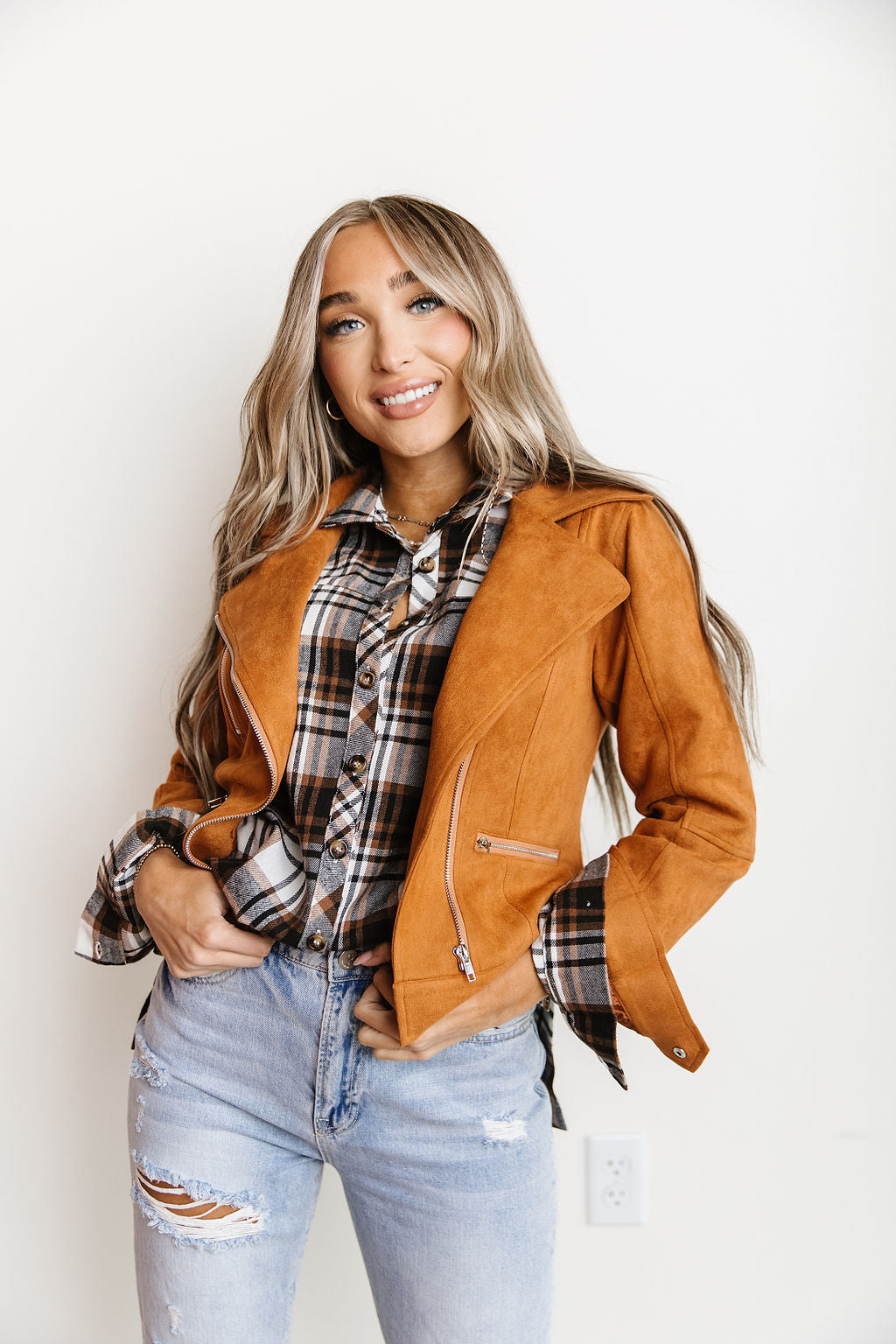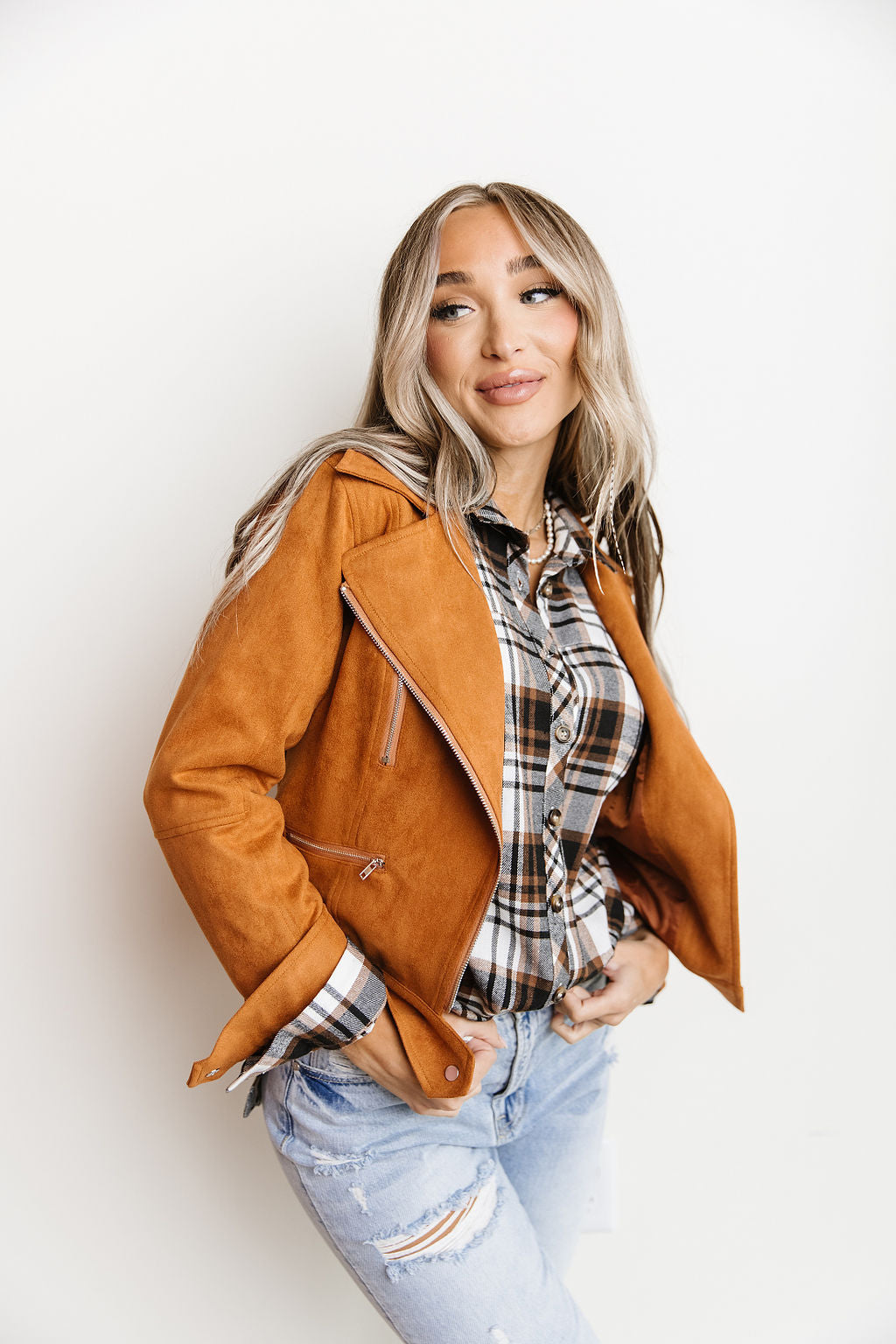 Vegan Suede Leather Moto Jacket- Camel