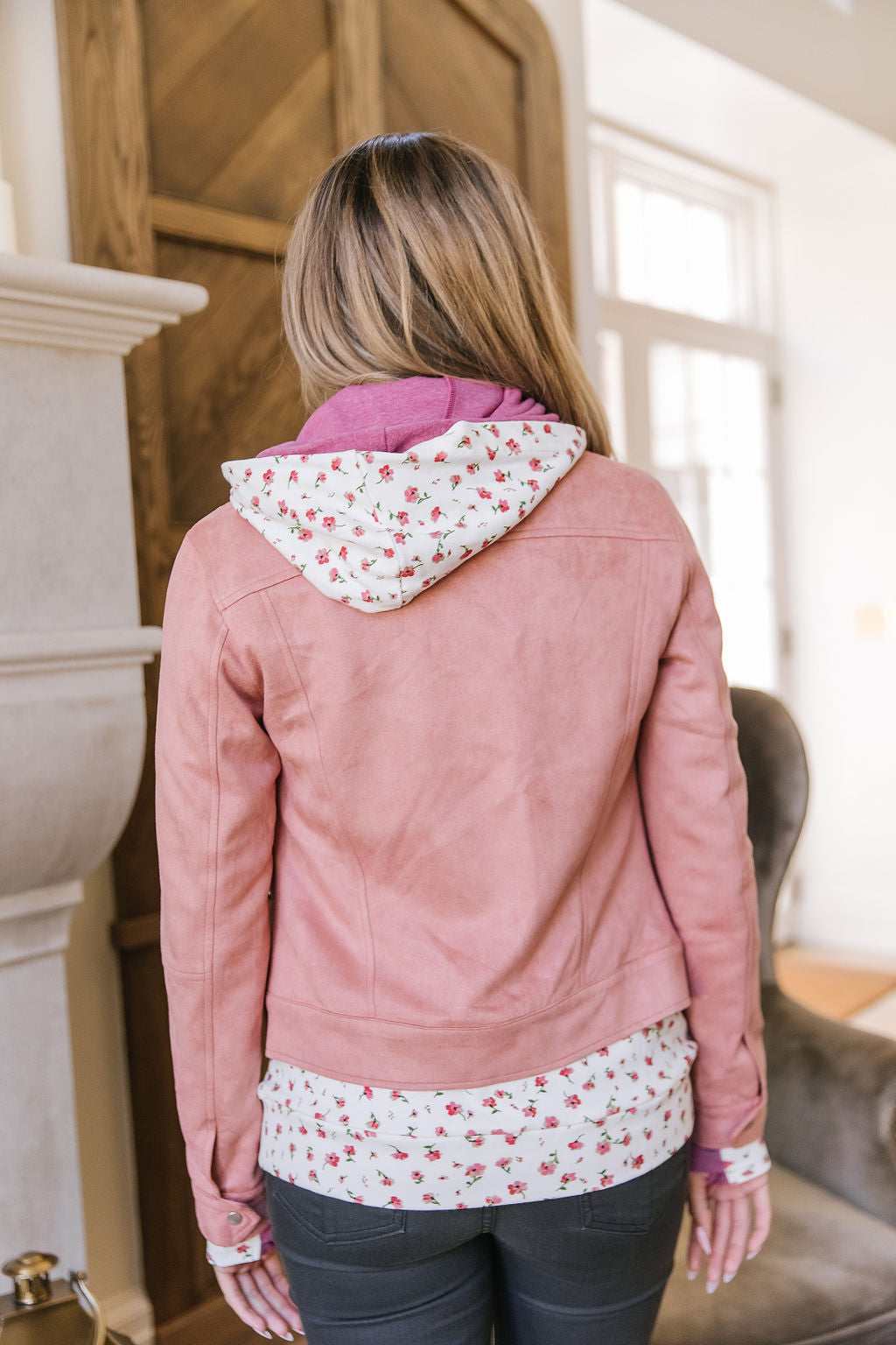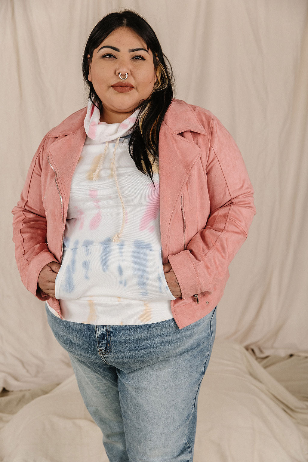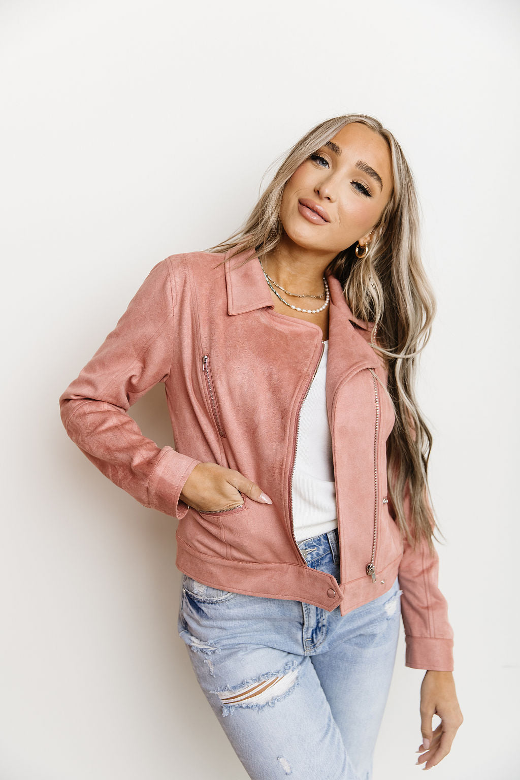 Vegan Suede Leather Moto Jacket: No Stretch - Pink