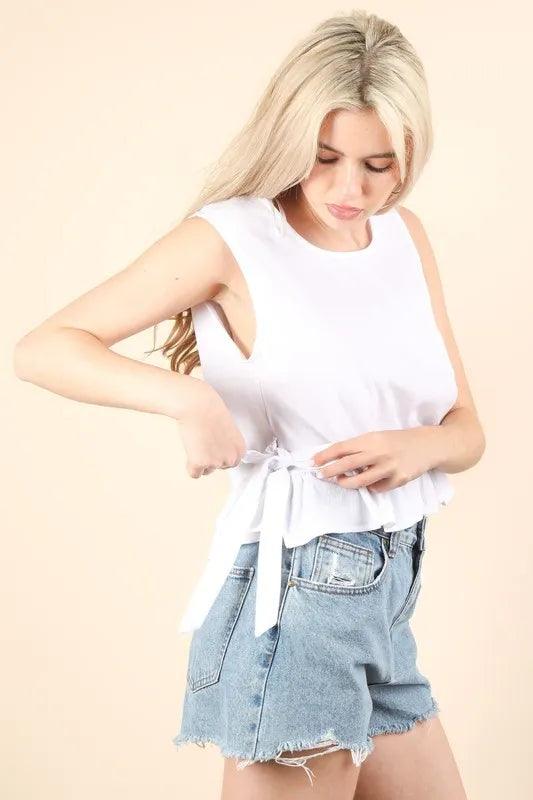 VERY J Side Tie Detail Ruffled Sleeveless Top