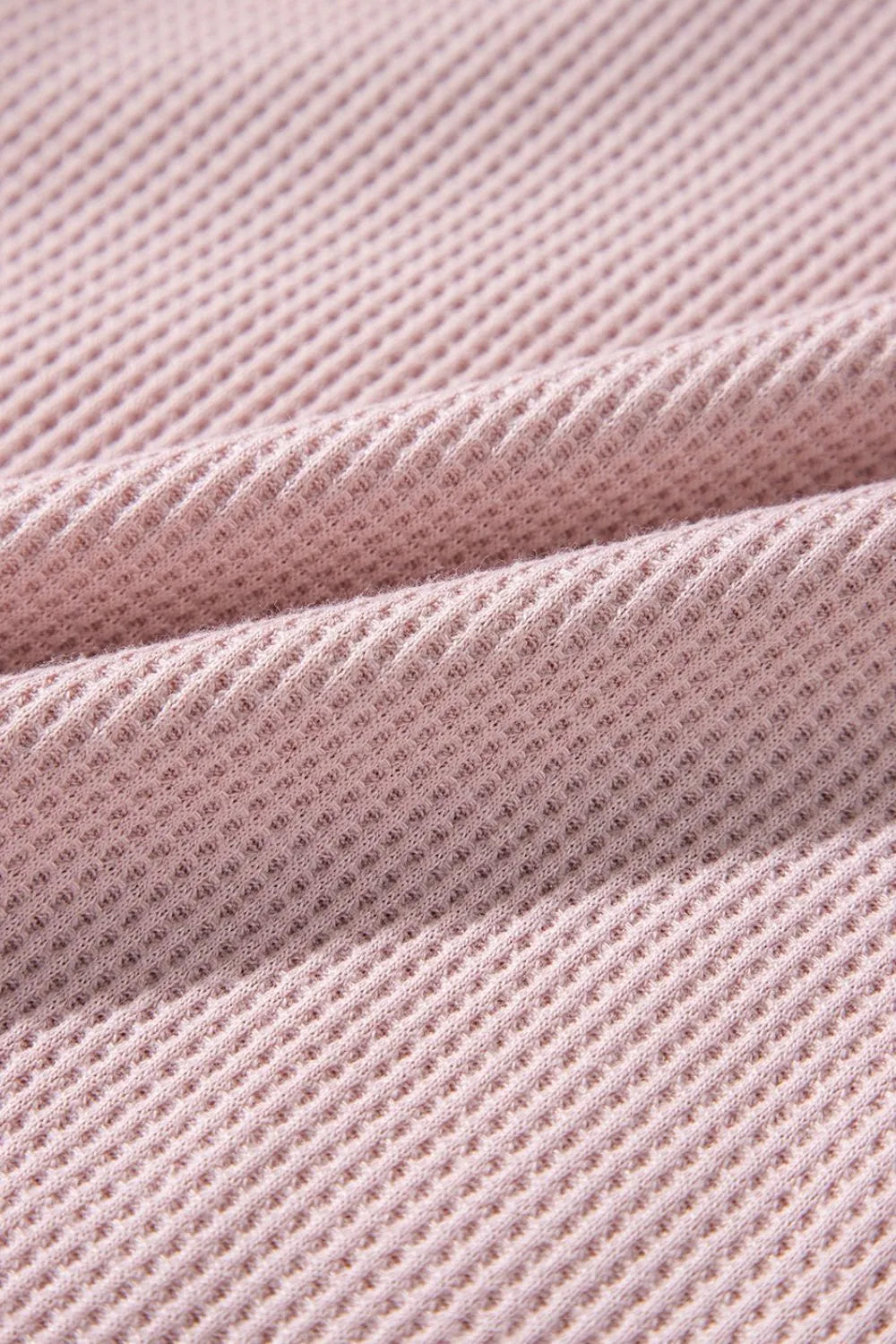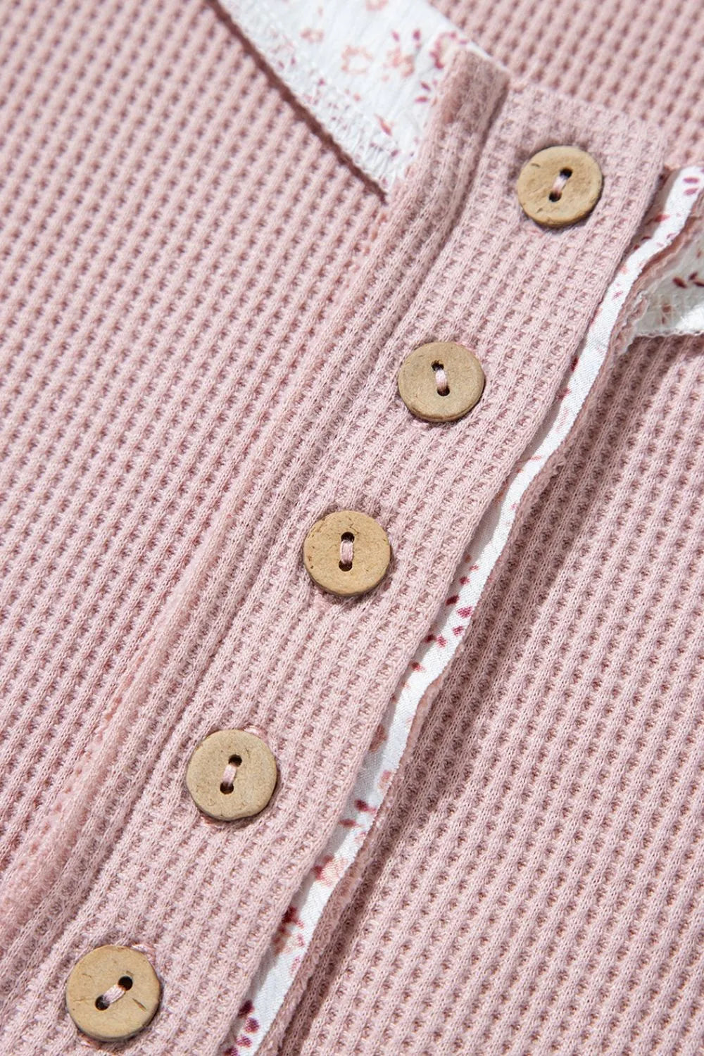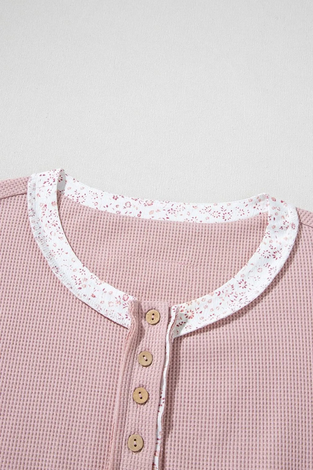Waffle Floral Patchwork Exposed Seam Detail Short Sleeve Top